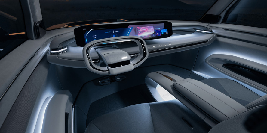 Σχεδιαστικά, πρέπει να πούμε ότι το πρωτότυπο SUV προκαλεί μια κάποια σύγχυση όσον αφορά την αισθητική του ταυτότητα και τη συμφωνία της με το οικογενειακό ύφος της Kia, ειδικά με τον εξωτερικό σχεδιασμό. Πιο οικεία, η καμπίνα με αυτή τη μεγάλη πανοραμική οθόνη και το τιμόνι που θυμίζουν αόριστα το Kia EV6. που δοκιμάσαμε πρόσφατα.