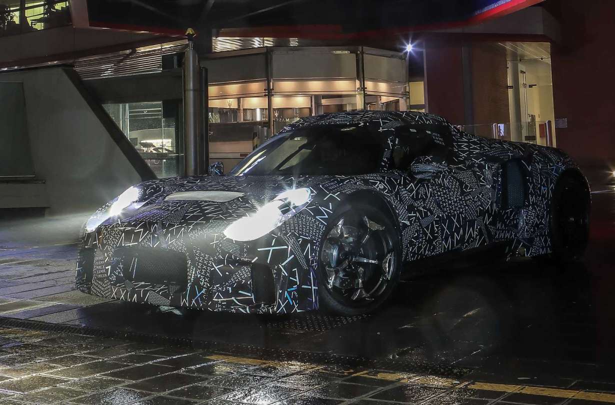 Όσον αφορά το πρωτότυπο, κάτω από το καμουφλάζ διακρίνουμε το αμάξωμα της Alfa Romeo 4C ενώ είναι εμφανής η κεντρομήχανη διάταξη, όχι μόνο από πλευράς αναλογιών αλλά και από τις μεγάλες εισαγωγές αέρα στο προφίλ.