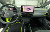 Αντίστοιχη είναι η εικόνα στο εσωτερικό όπου βρίσκουμε σπορ καθίσματα με ενσωματωμένα προσκέφαλά και επενδύσεις από Alcantara, νέο infotainment, εμβλήματα ID.X και λαχανί πινελιές σε ταμπλό, τιμόνι, πατάκια κτλ.
