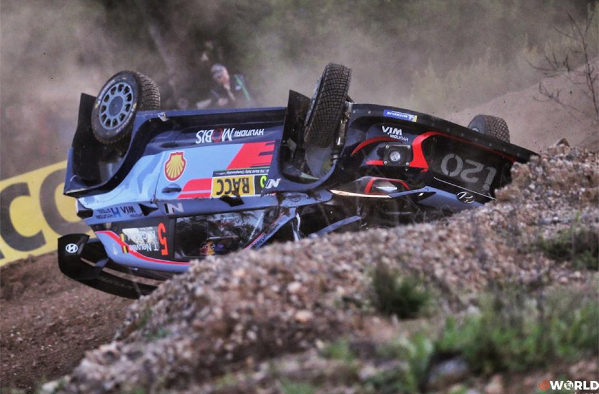 Δεν ξεκίνησε καλά ο Neuville το ράλι της Ισπανίας. Στη διάρκεια του shakedown και μόλις 500 μέτρα μετά την εκκίνηση της ειδικής τούμπαρε και το i20 WRC επέστρεψε με γερανό στο service park , έχοντας ζημιές στο εμπρός αριστερό μέρος, το καπό και την οροφή.