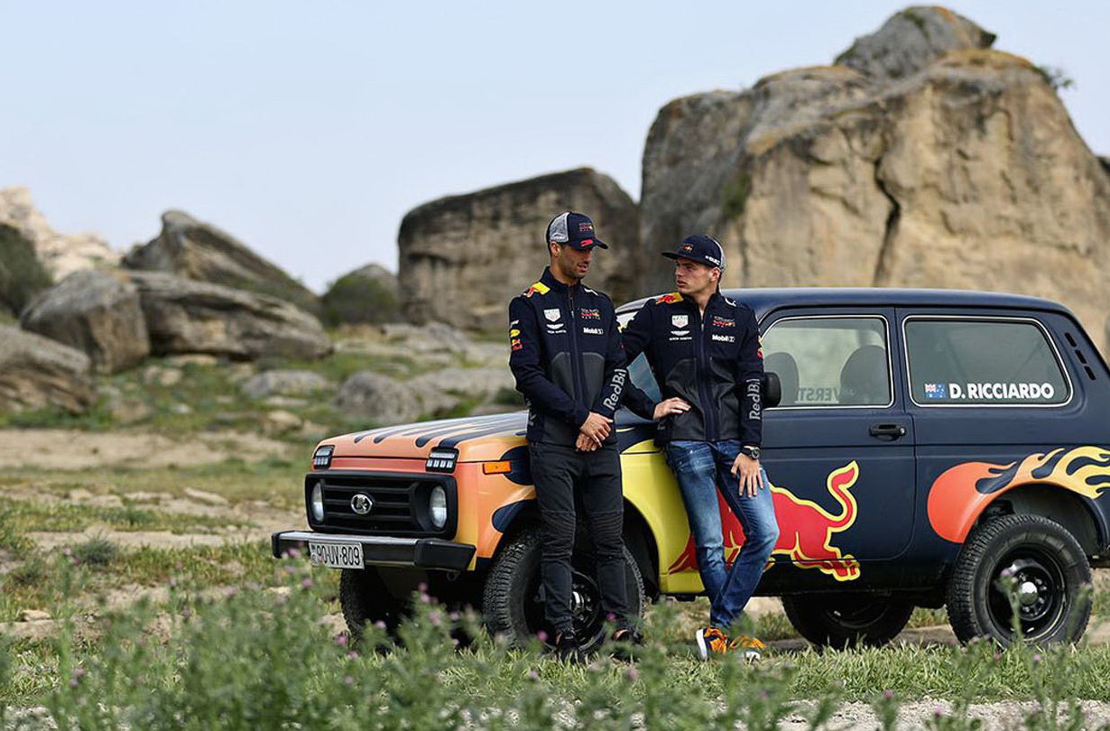 Αν και η Red Bull συνεργάζεται στενά με την Aston Martin στην εξέλιξη από κοινού ενός hypercar και είναι ο μεγαλύτερος χορηγός της ομάδας F1, έδωσαν στους Ricciardo και Verstappen ένα Lada Niva για την εξόρμησή τους. Και καλά, για τον Ολλανδό θα μπορούσε να είναι η τιμωρία του για τα πρόσφατα λάθη: Έξοδος στις κατατακτήριες του Bahrain, σύγκρουση με τον Hamilton, παραλίγο σύγκρουση με τον Hamilton στην Κίνα, όπου έπεσε πάνω στον Vettel και τον έβγαλε έξω. Λάθος έκανε και στις πρώτες ελεύθερες δοκιμές στο Baku με μικρή έξοδο που κατέστρεψε το εμπρός μέρος του αυτοκινήτου. Από την άλλη ο Ricciardo είναι σε peak της φόρμας του, όπως έδειξε με την εμφατική του νίκη στην Κίνα. Ίσως όμως να τον τιμωρούν επειδή δεν έχει ανανεώσει το συμβόλαιό του και ακούγονται φήμες ότι έχει έρθει σε προ-συμφωνία με τη Ferrari.