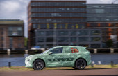 Φορώντας πράσινο και μαύρο χρωματισμό, καταλαβαίνεις από την πρώτη στιγμή ότι πρόκειται για Škoda. Το καμουφλάζ κάνει καλή δουλειά κρύβοντας μερικές λεπτομέρειες, αλλά κοιτώντας το από πίσω, μπορούμε να ξεχωρίσουμε τη σχεδιαστική συγγένεια με το μεγαλύτερο Enyaq χάρη στα χαρακτηριστικά φώτα.