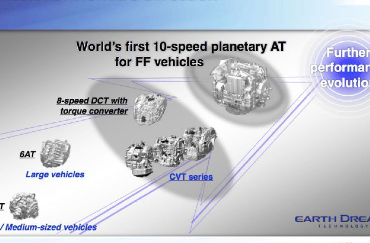 Το νέο κιβώτιο εξελίσσεται εξ ολοκλήρου in-house και σύμφωνα με τον Ιάπωνα κατασκευαστή έχει το ίδιο μέγεθος με το απερχόμενο 6άρι και αυτό το κάνει συμβατό με μια ευρεία ποικιλία μοντέλων, υφιστάμενων και μελλοντικών. Ο Ohtsu επισημαίνει ακόμη ότι το νέο κιβώτιο αλλάζει 30% ταχύτερα και κατεβάζει την κατανάλωση τουλάχιστον κατά 6%, ταυτόχρονα βελτιώνει την επιτάχυνση κατά 14% και μειώνει το ρυθμό περιστροφής του μοτέρ στο ταξίδι κατά 26%, σε σχέση με το απερχόμενο αυτόματο 6άρι.