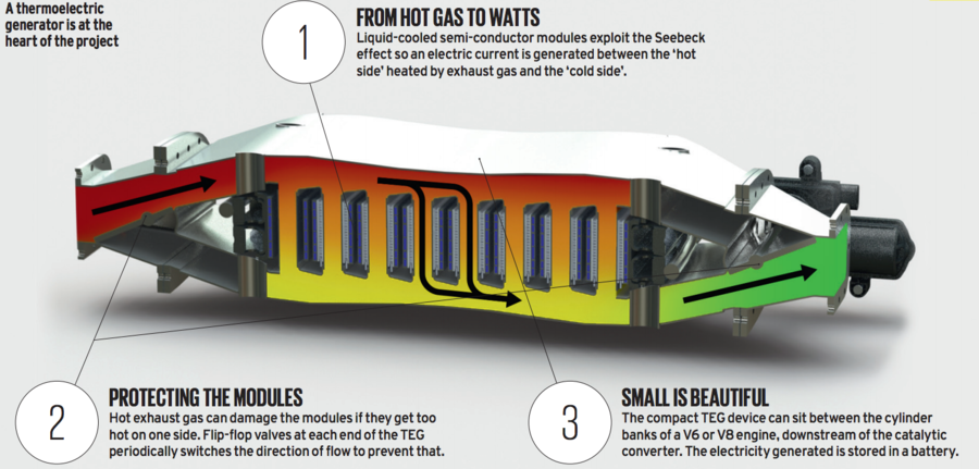 Σήμερα, μόνο το 30-35% του καυσίμου που καταναλώνεται μετατρέπεται πραγματικά σε κινητική ενέργεια, ενώ τα υπόλοιπο ποσοστό αφορά απώλειες θερμότητας. Αυτός είναι ο στόχος του πρότζεκτ, το οποίο υποστηρίχθηκε επίσης από τη Ford και την κυβέρνηση της Βρετανίας. Το σύστημα βασίζεται στο φαινόμενο Seebeck, το οποίο λέει ότι μια μεταβολή θερμοκρασίας μεταξύ δύο πόλων διαφορετικών υλικών είναι πιθανό να δημιουργήσει διαφορά τάσης και επομένως ροή ρεύματος.