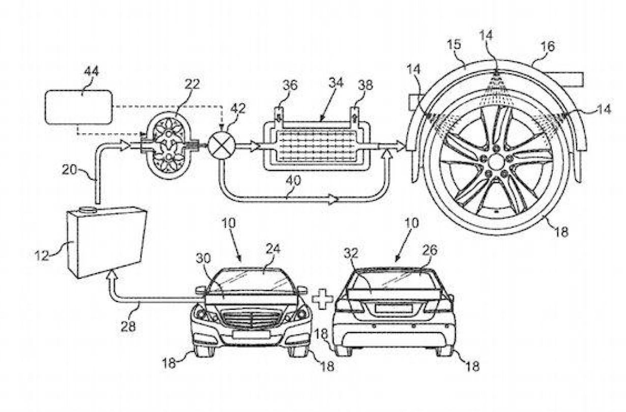 Τώρα η Daimler έρχεται να ρυθμίσει τη θερμοκρασία των ελαστικών των αυτοκινήτων της με ένα νέο σύστημα ψεκασμού νερού, όπως φαίνεται από τη σχετική ευρεσιτεχνία που κατέθεσε στο UK Intellectual Property Office. Το σύστημα της Daimler περιλαμβάνει δύο συλλέκτες νερού της βροχής, έναν στο εμπρός και έναν στο πίσω παρμπρίζ. Το νερό μπορεί να διατηρηθεί σε θερμοκρασία περιβάλλοντος, ή να ζεσταθεί από το σύστημα ψύξης του κινητήρα.