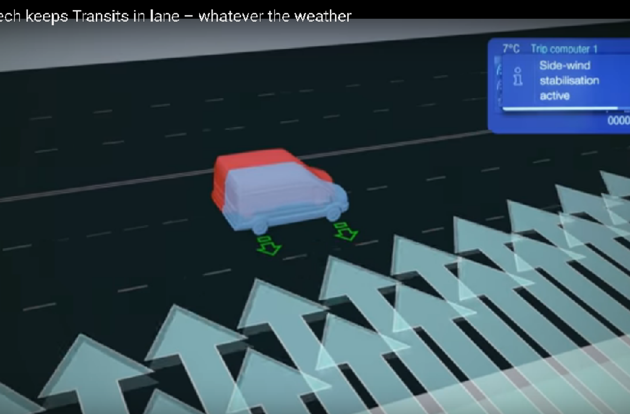 Το ηλεκτρονικό σύστημα βοηθάει τον οδηγό σε ευαίσθητα στον άνεμο οχήματα, και είναι στάνταρ σε όλα τα Ford Transit.