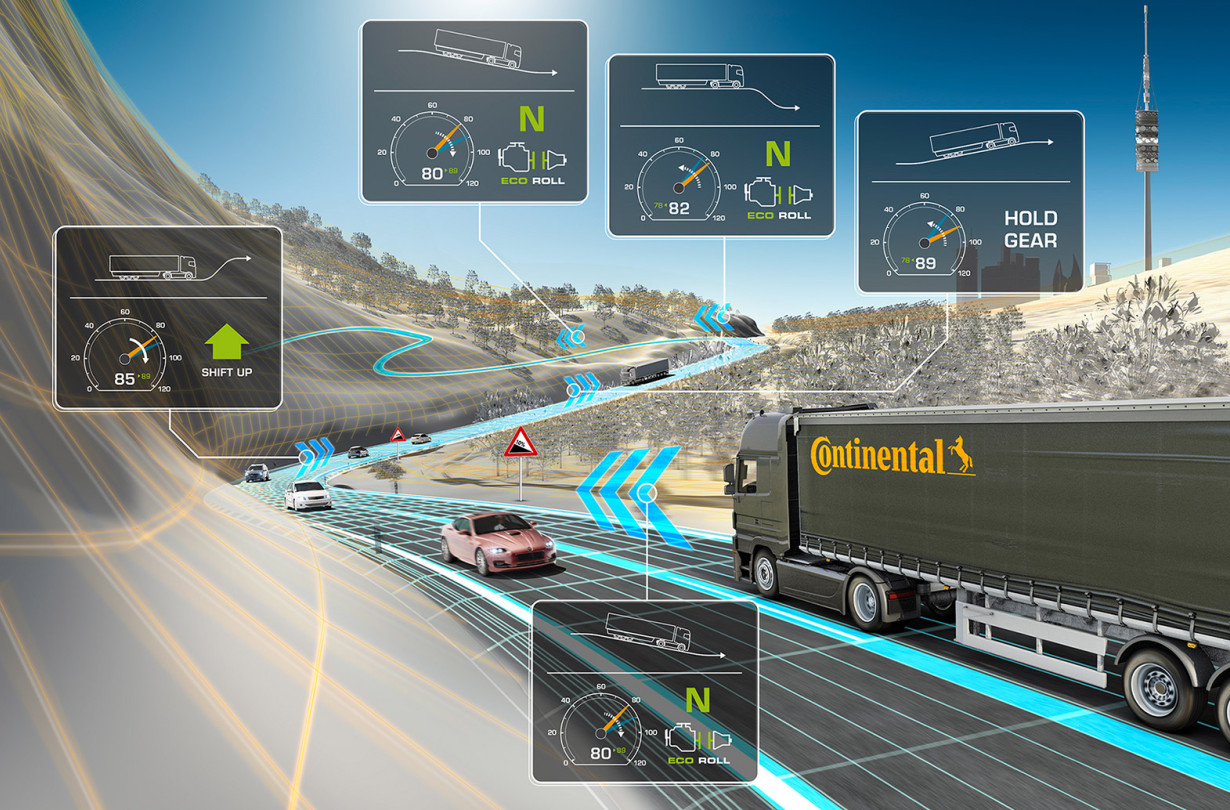 Περίπου 410.000 επαγγελματικά φορτηγά οχήματα διαθέτουν σήμερα το στατικό σύστημα αισθητήρων eHorizon, καθώς η Continental συνεργάζεται με δέκα μεγάλους κατασκευαστές φορτηγών από την Ευρώπη, την Ασία και τις ΗΠΑ. Το σύστημα eHorizon παρέχει στην ηλεκτρονική μονάδα ελέγχου του οχήματος σημαντικές πληροφορίες, σχετικά με την κατάσταση της οδικής διαδρομής που έχει σχεδιαστεί, με βάση ακριβή τοπογραφικά δεδομένα και πληροφορίες σήματος GPS. Στη συνέχεια, η ηλεκτρονική μονάδα ελέγχου προσαρμόζει αυτόματα το στυλ οδήγησης και την ταχύτητα του φορτηγού.