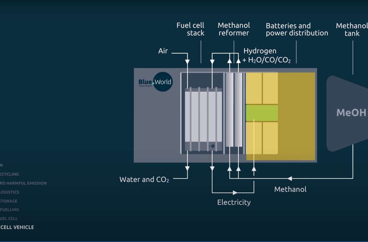 Το παραπάνω σενάριο, ανάπτυξης της τεχνολογίας κυψελών καυσίμου για οδικές μεταφορές με τη χρήση μεθανόλης, εξετάζει ως ενδεχόμενο η Blue World Technologies, μια εταιρία με έδρα τη Δανία. Όπως χαρακτηριστικά αναφέρει ο Anders Korsgaard, CEO της εταιρίας, σε συνέντευξή του στο SAE Media, «εργαστήκαμε με συμβατικές κυψέλες καυσίμου υδρογόνου για τα πρώτα πέντε χρόνια της επαγγελματικής μας καριέρας, στα τέλη της δεκαετίας του '90 και στις αρχές της δεκαετίας του 2000. Αποφασίσαμε όμως να εστιάσουμε την προσοχή μας στα e-fuels και βασικά στα υγρά e-fuels που λύνουν όλα τα εμπόδια της αγοράς που σχετίζονται με ένα αέριο καύσιμο».