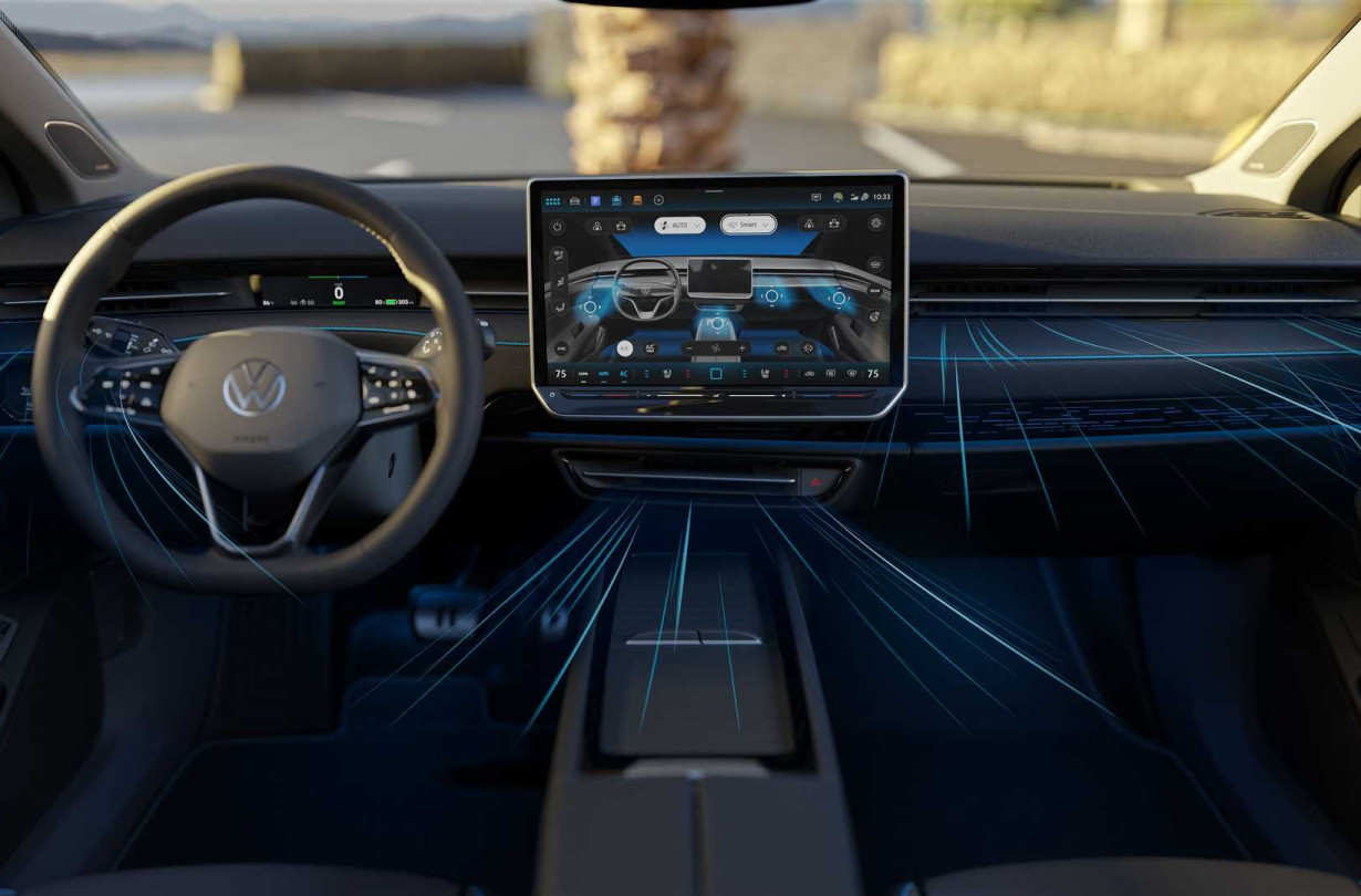Τώρα οι νέες λεπτομέρειες, λένε πως το σύστημα κλιματισμού του ID.7 θα μπορεί να ανιχνεύει την ηλιακή θερμότητα που δέχεται το αυτοκίνητο σε κάποιο σημείο από την έκθεσή του στον ήλιο, και θα φροντίζει να ισορροπεί τη θερμοκρασία της καμπίνας σε όλα τα σημεία του.