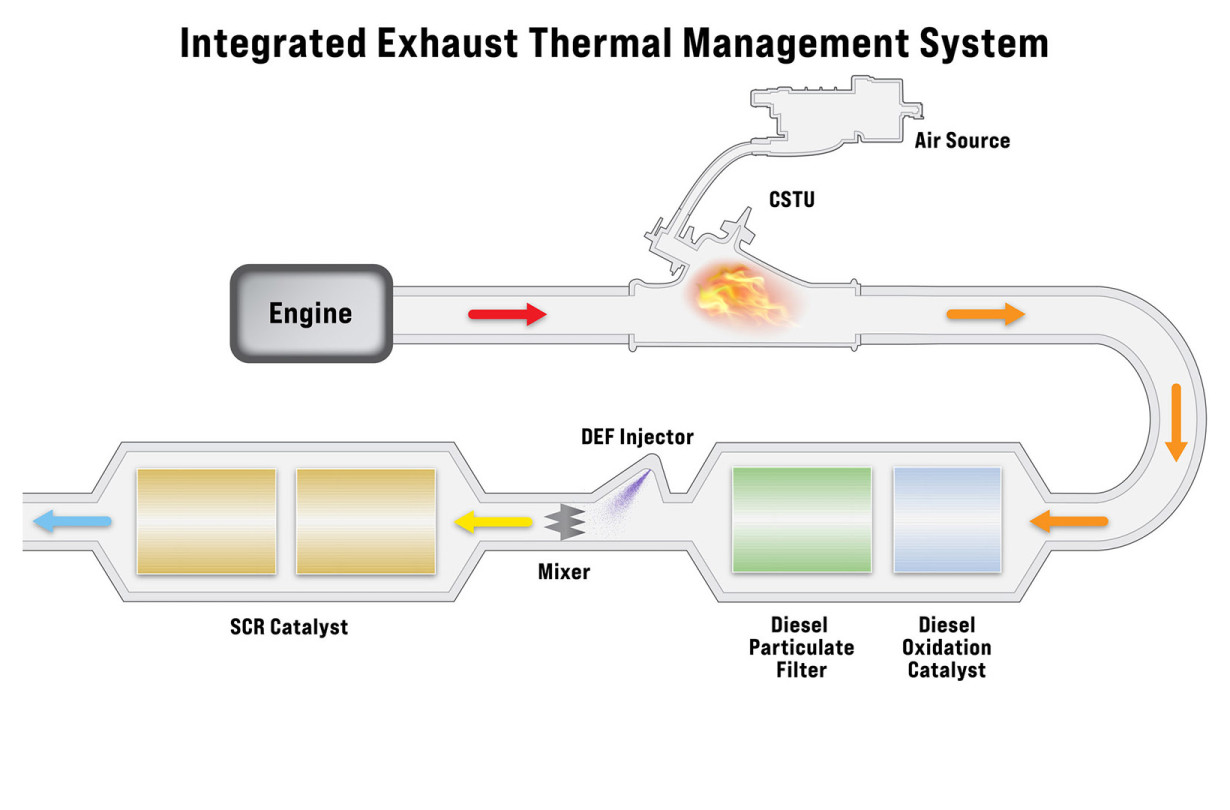 Με το σύστημα που αναπτύσσουν οι Tenneco και Eaton, σχεδιάζουν να χρησιμοποιήσουν έναν υπερσυμπιεστή τύπου Roots, ο οποίος θα τροφοδοτεί με αέρα ένα μικρό καυστήρα του συστήματος CSTU. Ο τελευταίος χρησιμοποιεί μία μικρή ποσότητα καυσίμου, ώστε να θερμάνει ταχύτατα τη ροή του αέρα και, εν συνεχεία, τους καταλυτικούς μετατροπείς και τα φίλτρα DPF. Εφόσον η θερμοκρασία στο σύστημα κατάλυσης φτάσει τους 200-250 βαθμούς Κελσίου, τα οξείδια NOx θα μπορούν να διασπώνται σε άζωτο και υδρατμούς.