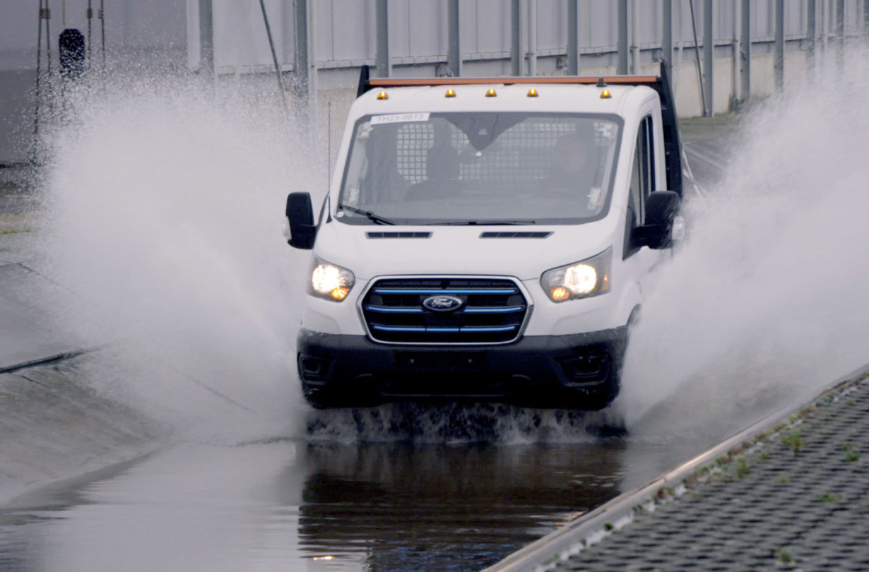 Η Ford υπέβαλε το E-Transit σε μία σειρά απαιτητικών και εξαντλητικών δοκιμών για να διασφαλίσει αντοχή αντίστοιχη με των πετρελαιοκίνητων μοντέλων μέσω μιας μεθοδολογίας που αναπαράγει τις επιπτώσεις ύστερα από χρήση και οδήγηση 240.000 και πλέον χιλιομέτρων -δηλαδή μιας δεκαετίας σκληρής δουλειάς- για πελάτες που εργάζονται στις πλέον δυσχερείς συνθήκες.