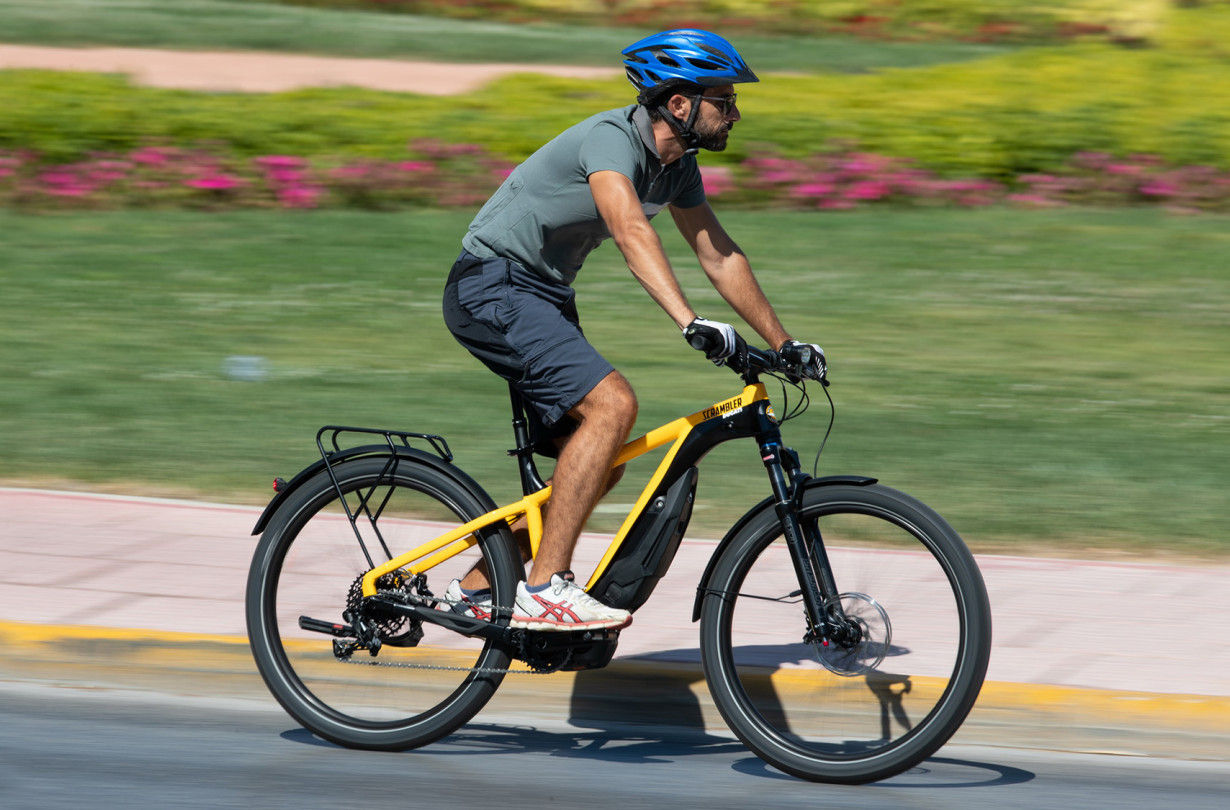 Χάρη στο φαρδύ τιμόνι των 760 mm και την άνετη σέλα, θα βρεις εύκολα μια άνετη θέση επάνω στο e-Scrambler προκειμένου να πεταλάρεις αποδοτικά για όση ώρα χρειαστεί. Εκτός από πολύ στιβαρό το πλαίσιο δείχνει επίσης πολύ ευέλικτο και τα ειδικά για e-bikes λάστιχα της Pirelli που ντύνουν τους τροχούς των 27,5” δίνουν ποιοτική κύλιση χωρίς να φοβούνται την επαφή με το χώμα.