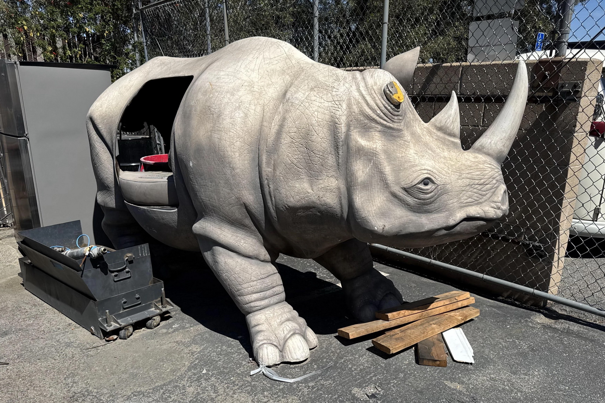 Ο συγκεκριμένος ρινόκερος εκτιμάται αρχικά μεταξύ 4.000 και 8.000 δολαρίων (περίπου 3.500-7.000 ευρώ). Τι παίρνεις; Ένα αντικείμενο φυσικού μεγέθους, μήκους άνω των τριών μέτρων, με… καπό, πόρτες, κάθισμα, μέχρι και ανεμιστηράκι. Σχεδόν αυτοκίνητο -αν έχεις φαντασία.
