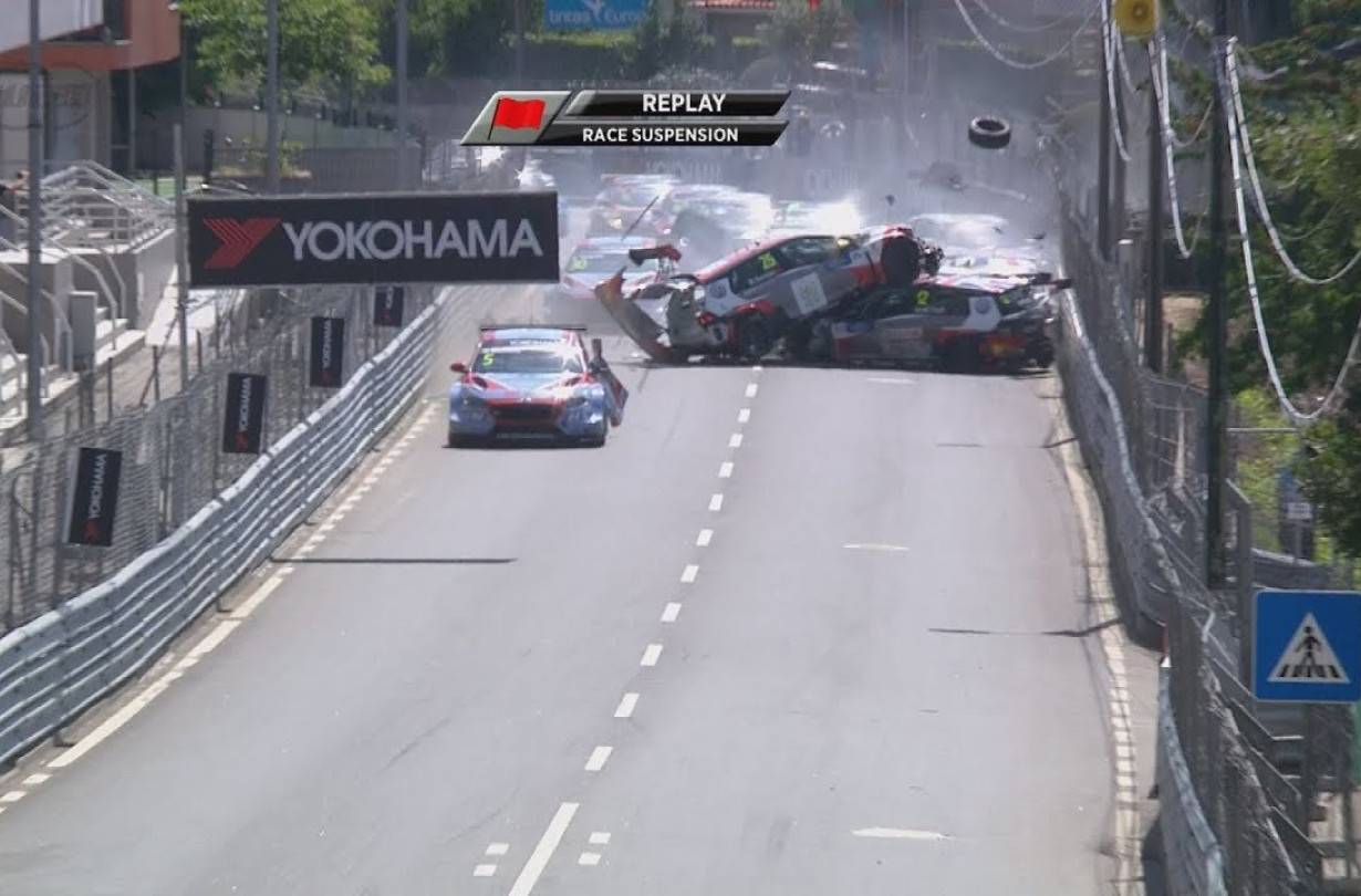 Μετά την εμπλοκή και των 27 αυτοκινήτων σε καραμπόλα, ο αγώνας διεκόπη για δύο ώρες και όπως μπορείτε να δείτε και στο βίντεο που ακολουθεί, κύριοι υπαίτιοι της «σύρραξης» ήταν ο Μαροκινός Mehdi Bennani και ο Βρετανός teammate του Rob Huff. Και οι δύο οδηγοί τρέχουν με τα Volkswagen Golf GTI TCR της ομάδας Sébastien Loeb Racing.