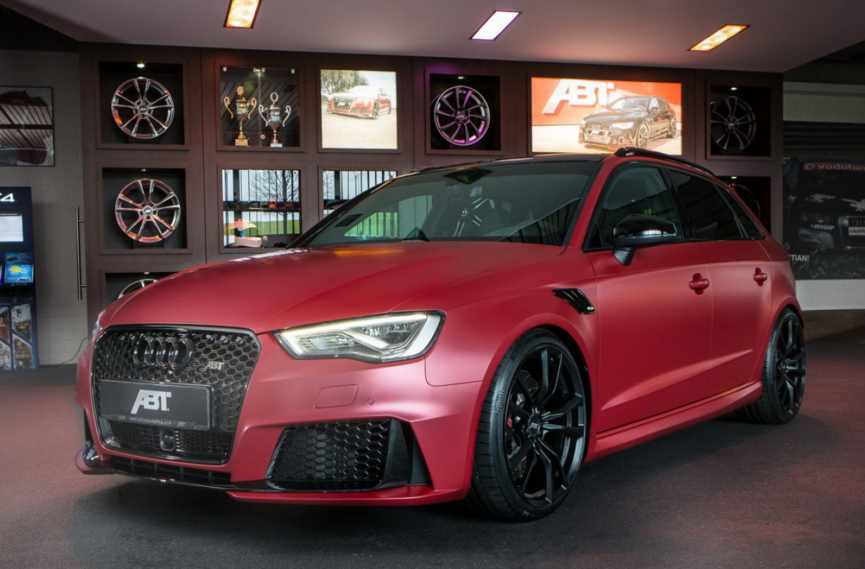 Το νέο, ακόμα πιο βελτιωμένο Audi RS3 από τον Abt, θα κάνει το ντεμπούτο του στο Essen, στο τέλος της εβδομάδας. Το αυτοκίνητο της παρουσίασης θα είναι σε κόκκινο ματ χρώμα με σκούρο περλέ βερνίκι και σε γυαλιστερό μαύρο look το κάτω μισό του πορτμπαγκάζ.