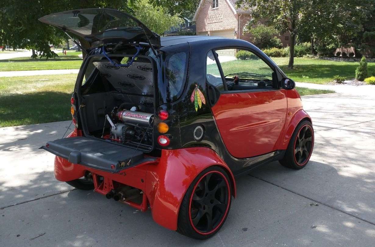 Αυτό έκανε ο –ανώνυμος– ιδιοκτήτης του Smart ForTwo πρώτης γενιάς ΜΥ2002. Αλλά δεν έβαλε οποιοδήποτε μοτέρ. Διάλεξε το πιο δυνατό: το 4κύλινδρο, 16βάλβιδο 1.300άρι 175 ίππων της Suzuki Hayabusa. Μιλάμε για 3,5 φορές μεγαλύτερη ιπποδύναμη!