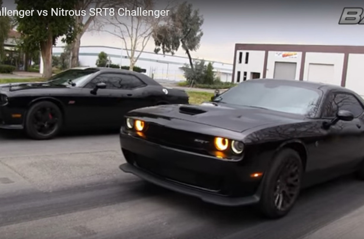 Dodge Challenger SRT8 392 με νίτρο vs στοκ Challenger SRT Hellcat [video]