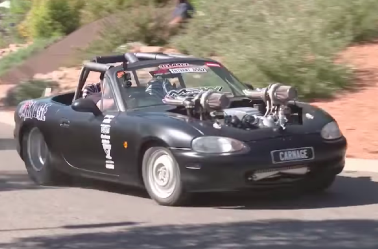 Οι Αυστραλοί του Street Machine Magazine όμως αποφάσισαν να τραβήξουν το πράγμα στα άκρα. Αγόρασαν online, χωρίς προηγουμένως να το δουν, ένα Mazda MX-5 NB δεύτερης γενιάς και του έβαλαν έναν GM LS1 V8 5,7 λίτρων τον οποίο βελτίωσαν με δύο τούρμπο GCG GTW3684.