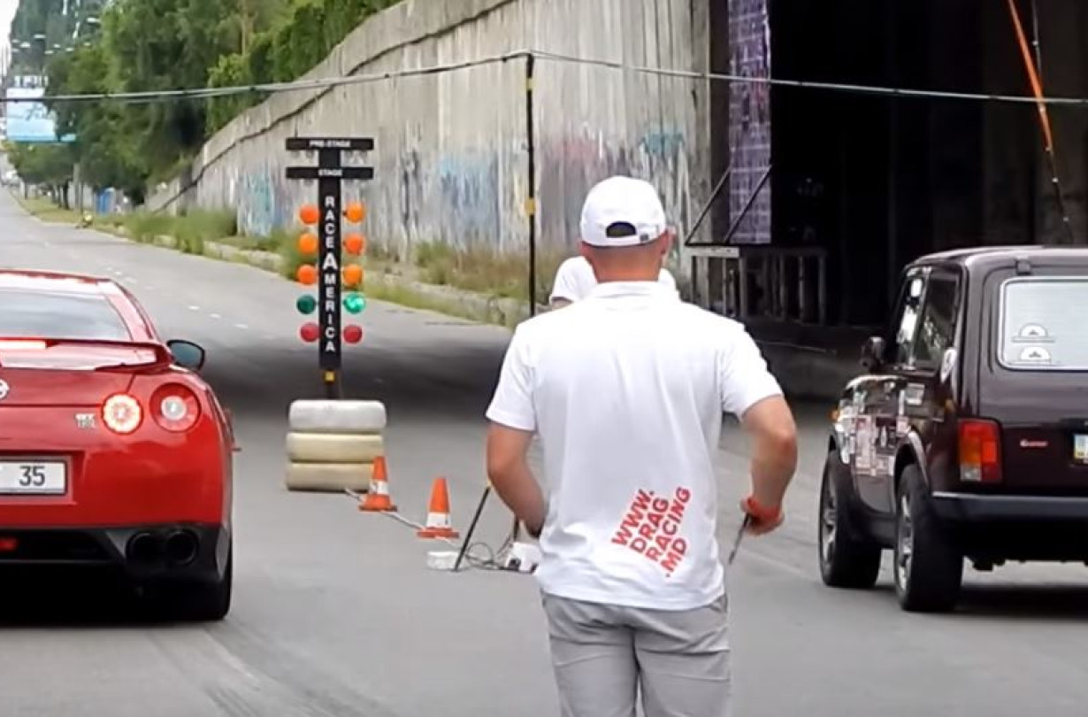 Ένα Nissan R35 GT-R με 680 άλογα στήνεται στην drag strip με ένα Lada Niva με 600 άλογα σε μια άγρια κόντρα στο κέντρο της πρωτεύουσας της Μολδαβίας.