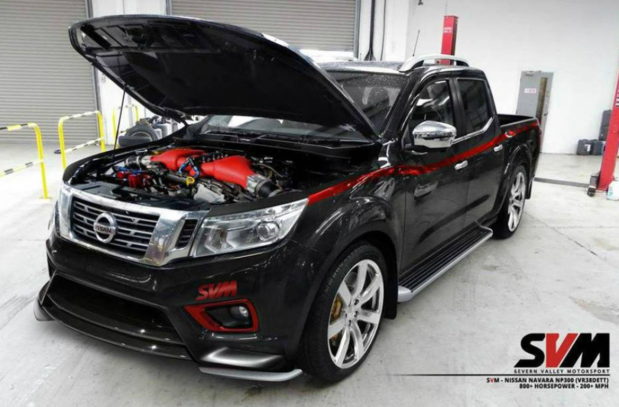 Το Navara R αποδίδει 800 ίππους, αλλά η SVM θα σας πει ότι μπορεί να φτάσει μέχρι τους 1.500. Ακόμα, εάν έχετε πολύ πιπέρι για τα λάχανά σας, η SVM προσφέρει και όλη την μετάδοση για να μετατρέψετε το Navara σας σε ένα πραγματικό GT-R (εξελιγμένη τετρακίνηση, κιβώτιο διπλού συμπλέκτη κ.α.) με αμάξωμα Navara.
