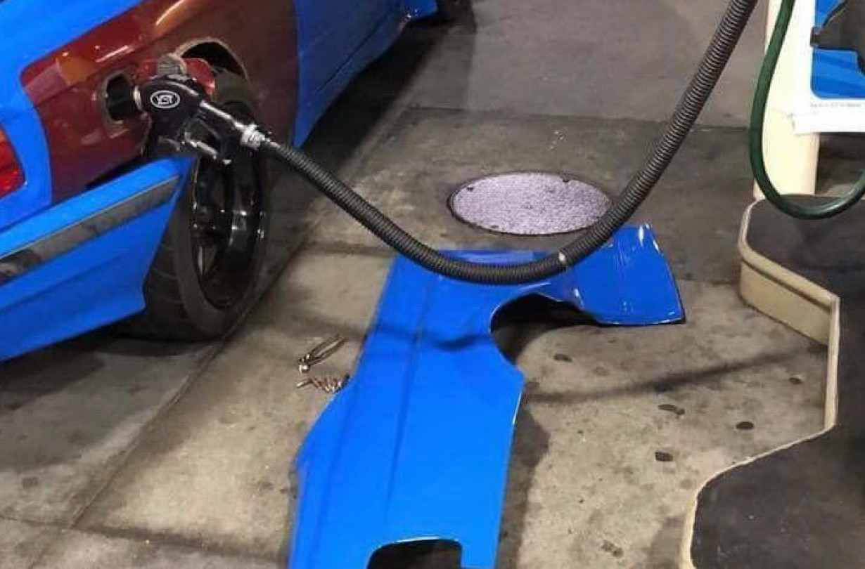Όμως το πρόβλημα βρίσκεται στο πίσω δεξιό φτερό. Διότι εκεί φιλοξενείται το πορτάκι του ρεζερβουάρ βενζίνης. Το οποίο, όταν τοποθετήθηκε η επέκταση του φτερού, δεν μπορούσε να ανοίξει.