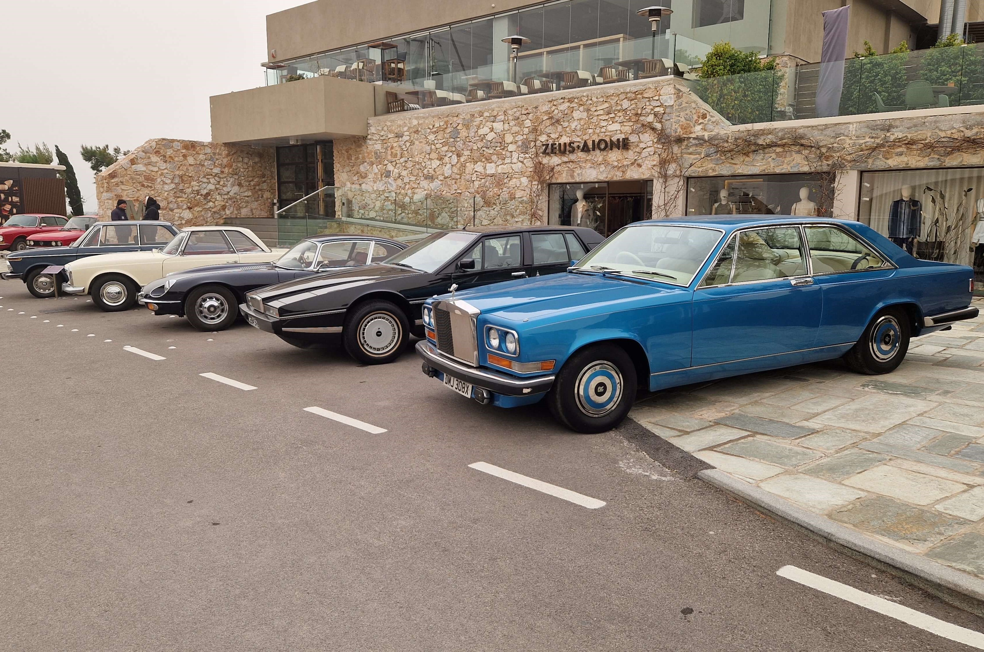 Δεν θα μπορούσε να λείπει η βρετανική πολυτέλεια. Σπάνιες Jaguar E-Type και Rolls-Royce ταίριαζαν απόλυτα με τα υπερπολυτελή γιοτ που ελλιμενίζονται στην Astir Marina. Πάντως, το βλέμμα μας αιχμαλώτισε η Aston Martin Lagonda, φαίνεται πραγματικά διαστημική.