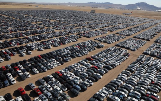 Οι χώροι προσωρινής αποθήκευσης της VW περιλαμβάνουν ένα άδειο γήπεδο ποδοσφαίρου στα προάστια του…