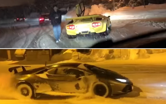 Εδώ όταν χιονίζει διπλώνουν οι νταλίκες. Αλλού διπλώνουν οι Lamborghini. Το παιχνίδι με την Huracan…