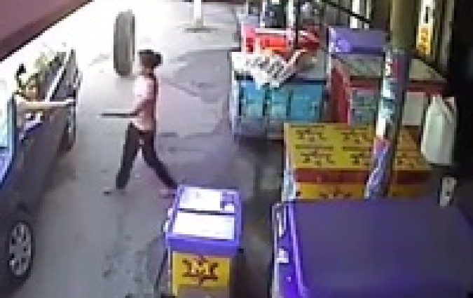 Και ξαφνικά ένα τεράστιο λάστιχο εμφανίστηκε να κυλά στο δρόμο με μεγάλη ορμή από πουθενά! …