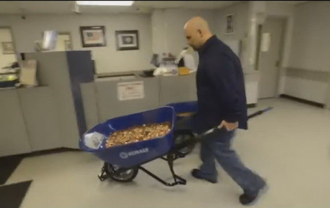 Πλήρωσε το τέλος ταξινόμησης με 300.000 κέρματα του 1 cent! [video]