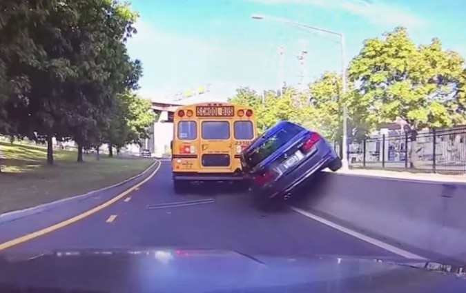 Το να επιχειρείς να περάσεις από δεξιά κάποιον είναι παράτυπο. Το να το κάνεις σε σχολικό λεωφορείο…