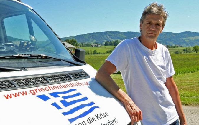 | Γιάννης ΚουτσουφλάκηςΈνα βαν από την Αυστρία φέρνει βοήθεια στην Ελλάδα