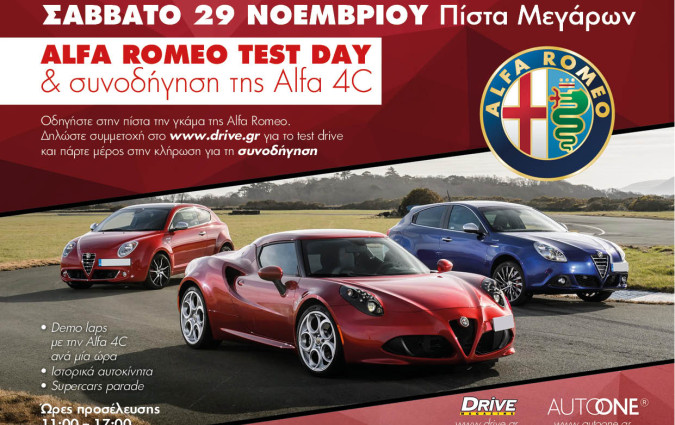 Το DRIVE διοργανώνει το Σάββατο 29 Νοεμβρίου ένα ολοήμερο test day για αυτοκίνητα Alfa Romeo στην…