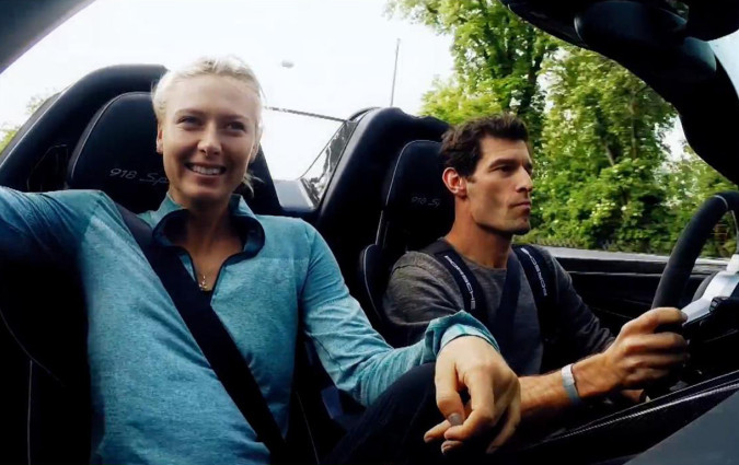 O Mark Webber, οδηγός της Porsche, και η Maria Sharapova, πρεσβευτής της γερμανικής εταιρείας,…