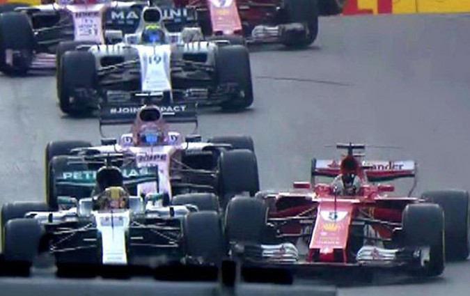 Οι Hamilton και Vettel συγκρούστηκαν πίσω από το Safety Car, καθώς ο πρώτος έκοψε απότομα, ο…