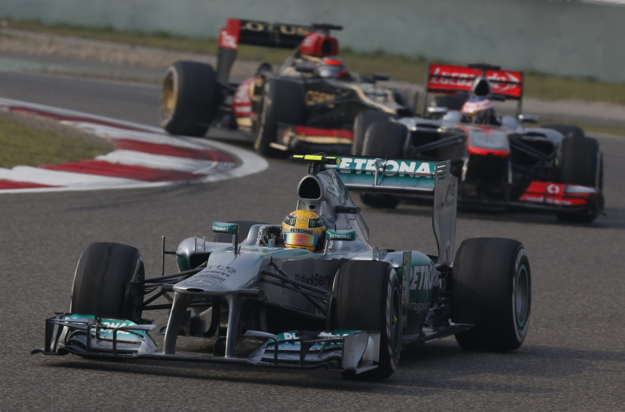Ο Μπάτον είχε περιγράψει τη στρατηγική των δύο pit-stop –με οικονομία στη διαχείριση των ελαστικών– που ακολούθησε στην Κίνα ως «ελάχιστα συναρπαστική» καθώς άφηνε τους αντιπάλους του να τον προσπερνούν εύκολα ώστε να μην εμπλακεί σε μάχες που θα επιτάχυναν τη φθορά των ελαστικών του.