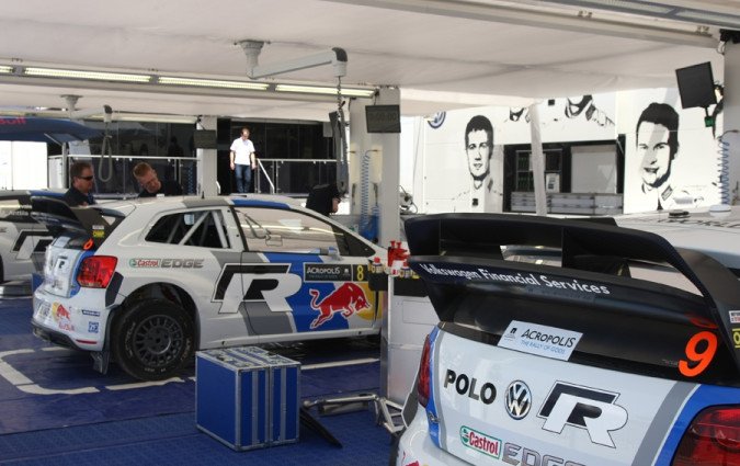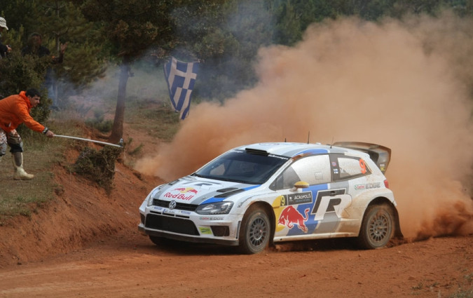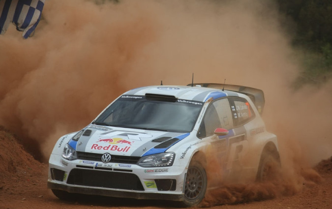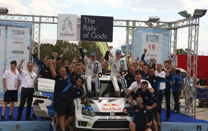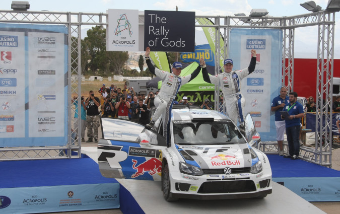 Ο Γιάρι-Μάτι Λάτβαλα πανηγυρίζει τη νίκη του στο Ακρόπολις του 2013 στο τιμόνι του VW Polo R WRC…