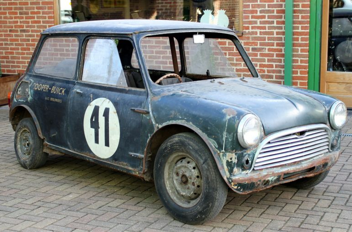 Το 1964 λοιπόν, στο πίσω μέρος αυτού του Mini, ακριβώς μεταξύ των πίσω τροχών, τοποθέτησαν κατά μήκος έναν V8 3,5 lt από κάποια Buick. Σύμφωνα με το Autosport εκείνης της εποχής (το άρθρο του οποίου μπορείτε να δείτε στη gallery) η αρχική απόδοση του κινητήρα ήταν 155 PS στις 4.400 rpm, ενώ η B.R.T. είχε σκοπό να τον βελτιώσει ως τα 220 PS στις 5.800 rpm, χωρίς βέβαια να ξέρουμε αν τα κατάφερε τελικά. Στο βολάν του κουμπώθηκε ένα 4άρι κιβώτιο από Jaguar E-Type. Από εκεί, ένας άξονας μετάδοσης πέρασε ανάμεσα από τα καθίσματα οδηγού και συνοδηγού, για να καταλήξει μεταξύ των εμπρός τροχών, σε ένα διαφορικό επίσης από E-Type, τοποθετημένο ανάποδα, και το Cooper-Buick ήταν έτοιμο.