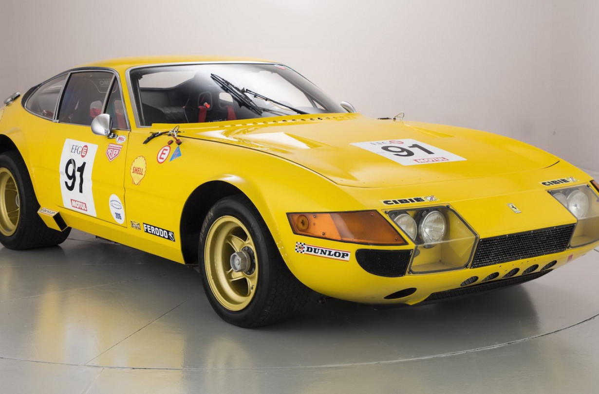 Η σπάνια 365GTB/4 Competizione που σας δείχνουμε είναι ένα ωραίο δείγμα βαμμένο σε εντυπωσιακό κίτρινο και με όλα τα αγωνιστικά του παραφερνάλια. Στα στοιχεία του περιλαμβάνονται επίσης το «Νο 91» πάνω στις πόρτες, αλλά και αυτοκόλλητα χορηγών ή τεχνικών υποστηρικτών, όπως της Shell, της Dunlop, της Heuer, της Bell, της Ferodo, της Champion και της Cibie.