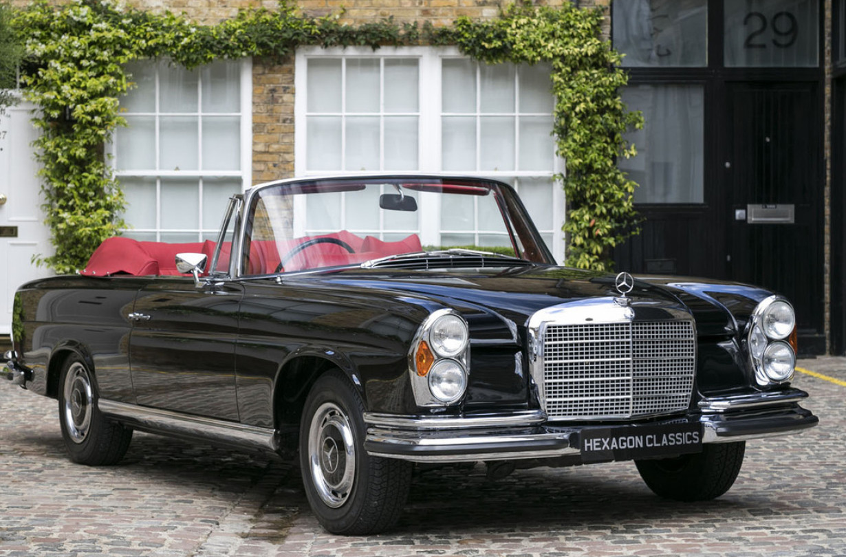 Το αυτοκίνητο διατίθεται στο Ηνωμένο βασίλειο από την Hexagon Classics και πρόκειται για ένα υπέροχο 4θέσιο καμπριολέ του 1970 με υφασμάτινη μαύρη κουκούλα έξι στρώσεων και 4άρι αυτόματο σασμάν για αγχολυτικές βόλτες. Αυτή η 280 SE 3.5 κρύβει κάτω από το καπό της το ολοκαίνουργιο στην εποχή της μεταξένιο μοτέρ V8 με 3,5 χιλιάδες κυβικά και 200 άλογα. Ο πρώτος ιδιοκτήτης κατέθεσε στη Στουτγάρδη έξτρα όβολα, προκειμένου να την εξοπλίσει με προσκέφαλα στα εμπρός καθίσματα και ηλεκτρικά παράθυρα. Οι μαύρες λαμαρίνες της 280 SE 3.5 κάνουν ωραίο κοντράστ με το επίσης έξτρα πληρωμένο κόκκινο δερμάτινο σαλόνι.
