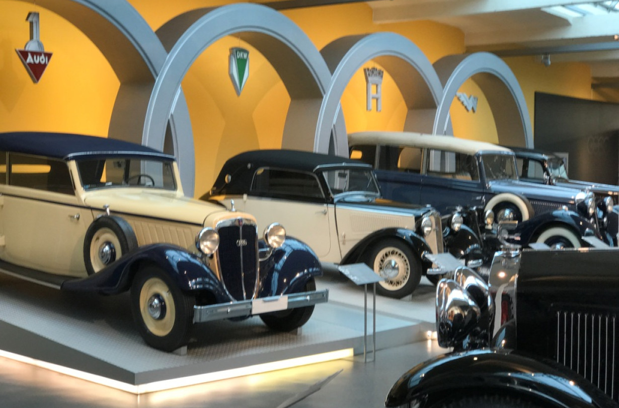 Τότε προέκυψε και το γνωστό σήμα με τους τέσσερις δακτυλίους, έναν για κάθε φίρμα, το οποίο όμως κοσμούσε μόνο τα αγωνιστικά της εταιρίας. Στα μοντέλα παραγωγής, η καθεμιά συνέχισε να χρησιμοποιεί το δικό της, αφού απευθύνονταν σε πολύ διαφορετικό κοινό. Η DKW έφτιαχνε μικρά αυτοκίνητα και μοτοσικλέτες, η Wanderer μεσαία, η Audi τα αντίστοιχα premium μεσαία της εποχής και η Horch τις πιο πολυτελείς λιμουζίνες. Όλα αυτά όμως έπαψαν να ισχύουν από το 1939, με την έναρξη του Β’ Παγκοσμίου Πολέμου, όταν όλα τα εργοστάσια στράφηκαν στην κατασκευή στρατιωτικών οχημάτων.
