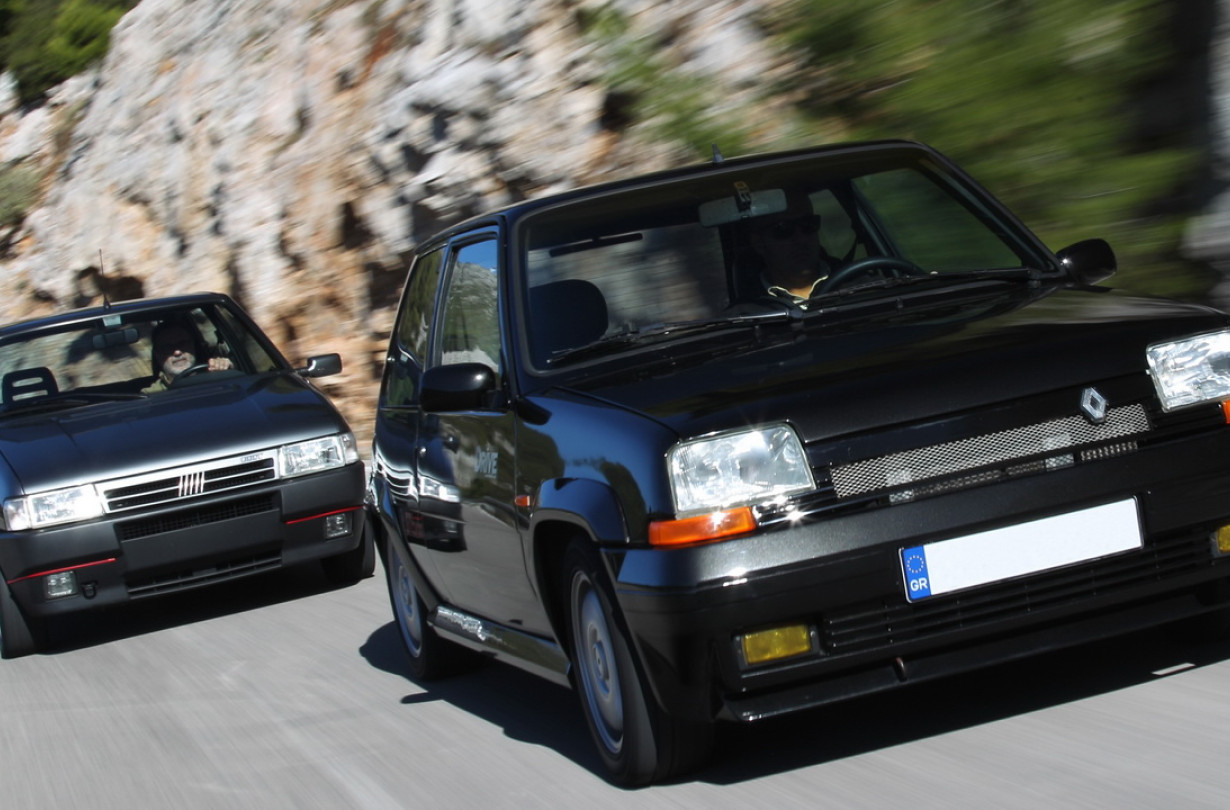 Στα χέρια µας λοιπόν βρίσκονται δύο από τους µνηστήρες του τίτλου στη δύση της δεκαετίας του ’80. Η τελευταία βερσιόν του Supercinq GT Turbo, η Phase 2, και η έκδοση Racing του Uno Turbo i.e. Και τα δύο κάτω από το καπό κρύβουν κινητήρα µε παρόµοιο σχεδιασµό και πολλά παρόµοια χαρακτηριστικά, αλλά τεχνολογικά είναι η µέρα µε τη νύχτα.