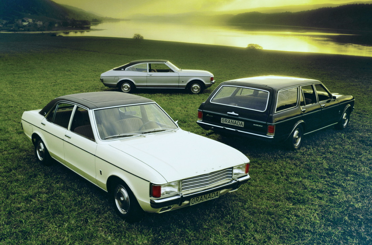 Είμαστε στο 1972. Ο στιλίστας Joe Oros εμπνεύστηκε από τα «μικρά» αμερικανικά αυτοκίνητα για να σχεδιάσει το Granada, ένα μοντέλο με επιβλητικό μέγεθος για τα ευρωπαϊκά δεδομένα, με τετράγωνο προφίλ που γλύκαινε με κάποιες κούρμπες. H παρουσίαση του αυτοκινήτου ήταν κολακευτική χωρίς τη χρήση υπερβολικού νίκελ. Εδώ να σημειώσουμε την περίφημη επικάλυψη βινιλίου στην οροφή που ήταν στάνταρ και πολύ της μόδας τη δεκαετία του ’70.