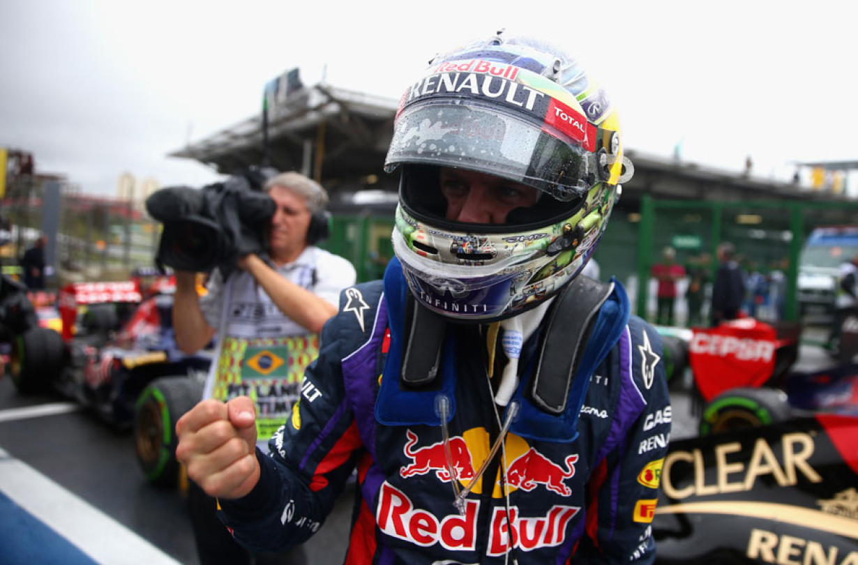 Ποιος άλλος; Ο Vettel που όχι μόνον κέρδισε άνετα στη Βραζιλία αλλά έσπασε και την παράδοση που θέλει τον κάτοχο της pole position να μην κερδίζει στον συγκεκριμένο αγώνα. Δεύτερος ο Webber στον τελευταίο του αγώνα στην F1 και τρίτος ο Alonso.