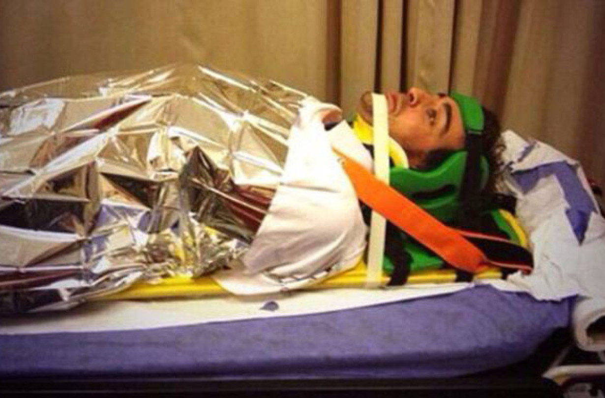 Ο Ισπανός οδηγός της Ferrari ένοιωθε πόνους στη μέση μετά τον χθεσινό αγώνα στο Άμπου Ντάμπι και μεταφέρθηκε στο νοσοκομείο για να εξεταστεί. Σήμερα ο μάνατζερ του ανέβασε στο twitter μια φωτογραφία του Alonso από την μεταφορά του με το φορείο, η οποία σοκάρει τους φίλους του οδηγού της Ferrari.