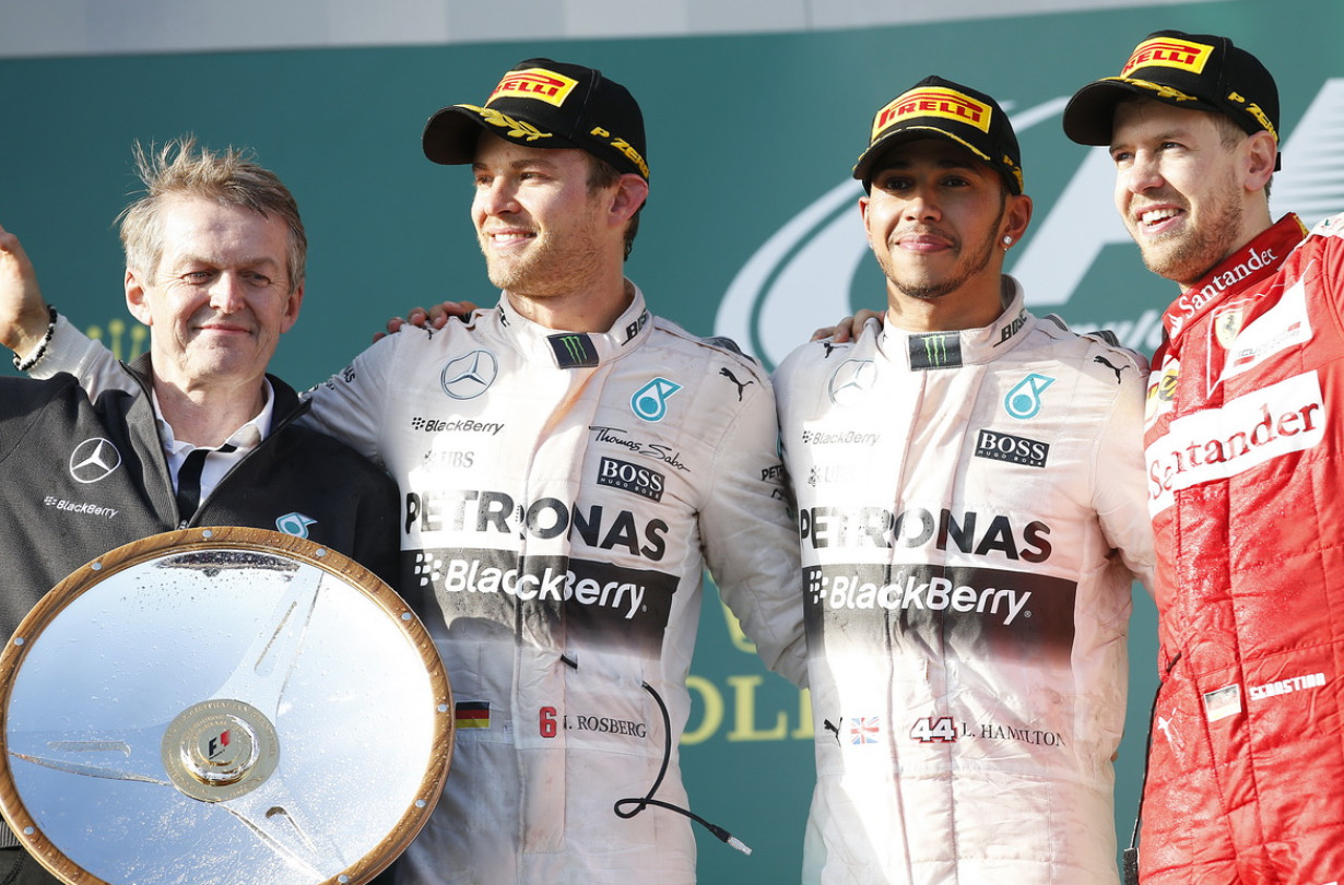 Ο Rosberg τερμάτισε δεύτερος, 1,3” πίσω, καθώς η Mercedes συνέχισε από εκεί που είχε σταματήσει πέρσι, κυριαρχώντας απόλυτα και αφήνοντας τους άλλους 33 δευτερόλεπτα πίσω.