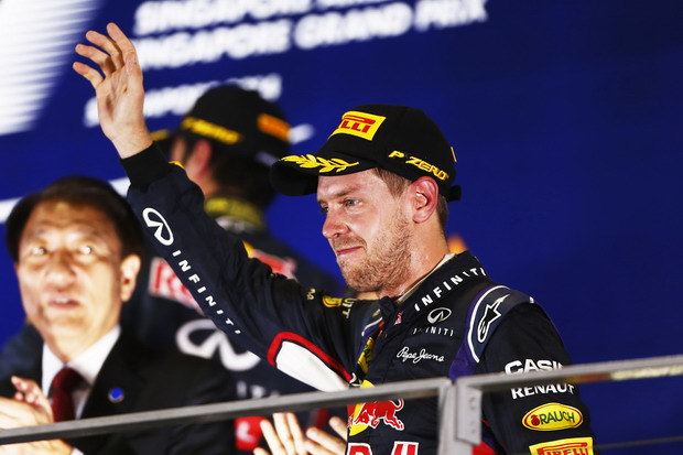 Έτσι οι δύο οδηγοί της Red Bull ανέβηκαν στο βάθρο, με τον Vettel στη δεύτερη θέση – την καλύτερή του φέτος μέχρι στιγμής.