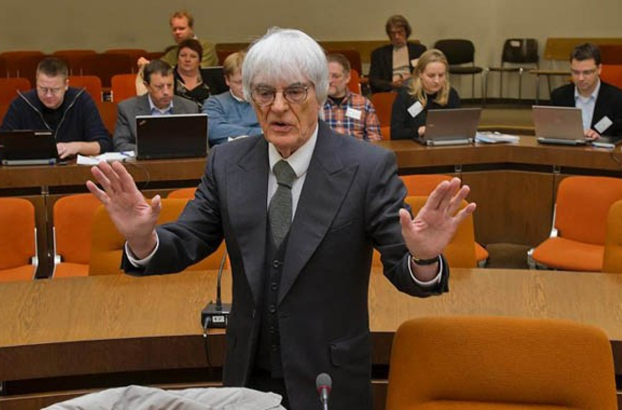 Ο Ecclestone κατηγορείται ότι δωροδόκησε ένα γερμανό τραπεζίτη με 27 εκατομμύρια λίρες, προκειμένου να μεσολαβήσει στην πώληση των μετοχών της F1 στην εταιρεία του. Τον ερχόμενο Απρίλιο θα αρχίσει η πολύκροτη δίκη και μέχρι τότε η «γριά αλεπού» θα βρίσκεται εκτός του Δ.Σ.