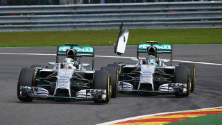 Ο Γερμανός προσπάθησε να περάσει από την εξωτερική και χτύπησε το πίσω λάστιχο του team-mate του την ώρα που μετάνιωσε και έκοψε για να ξαναμπεί πίσω του.