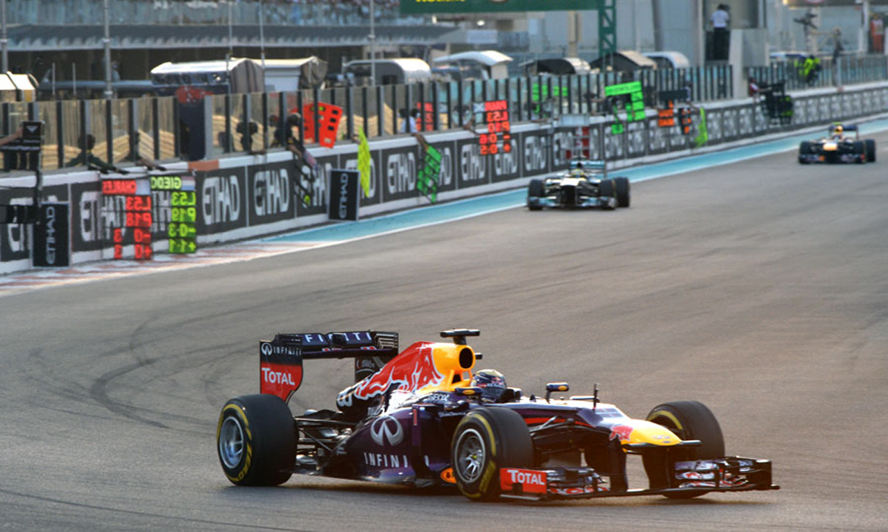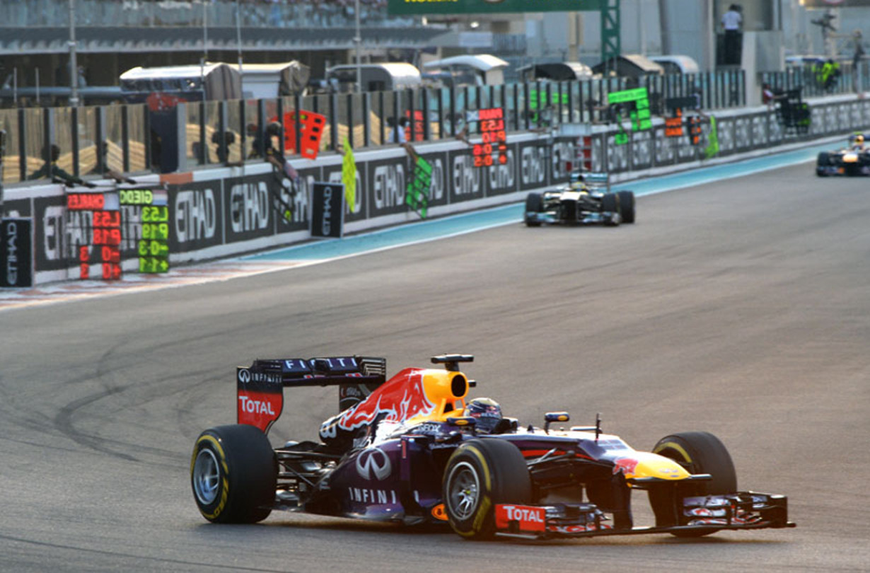 Με απίστευτη άνεση ο παγκόσμιος πρωταθλητής του 2013 Sebastian Vettel έφτασε στη νίκη στη Yas Marina και άφησε πολύ πίσω τον Mark Webber που παρότι εκκινούσε από την pole δεν κατάφερε για μία ακόμα φορά να επιβληθεί στην ανωτερότητα του Vettel.